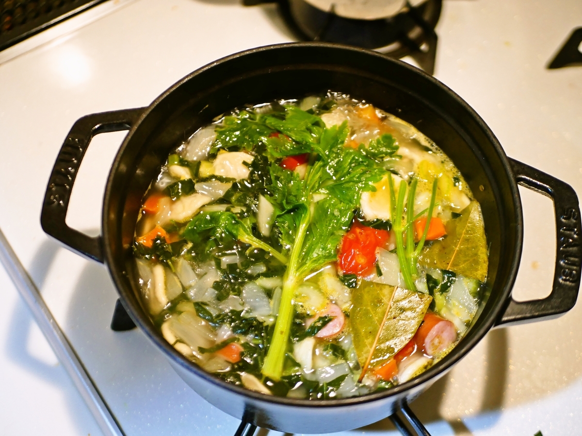 塩味→トマトスープ→カレー風味と味を変えて数日、楽しみました。