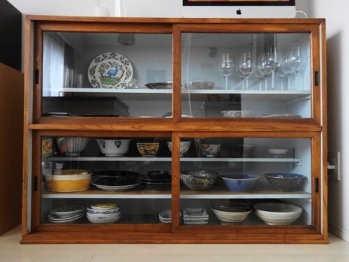 我が家に食器棚がやってきました。 ツレがずーっと棚を探し続けてたんですが、ようやく好みのものに出合えたとのこと。早速、うつわを入れてみましたよ。 うーん。 いいもんですな。 ふたりでしばし、見つめてはニヤニヤ。 さて、本日も弁当づくり。 菜の花…