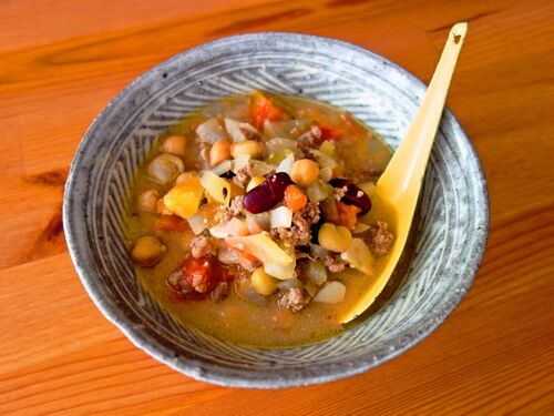 ミソコンカン。 豆とひき肉たっぷりの、スパイシーな味噌スープです。 前々から「クミンと味噌、さらにはトマトって相性いいよな」って思ってたんですね。以前に雑誌『栄養と料理』のために考えたレシピ。 ブログ転載許可をいただけたので、こちらにもメモ。…