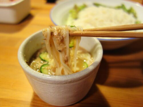 昨日は冷や汁でつけめんにしました。用意するものは 味噌(あれば麦味噌) ゴマ サバ水煮缶 キュウリ ミョウガ 水 めん 原価、2人分で370円ぐらいかな。 きょうはひやむぎでやりました。そうめんでも、うどんでも。 これ、手間はちょっとかかります。 麦みそ…