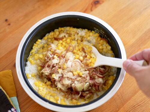 夏のたのしみ、「とうもろこしとみょうがの混ぜごはん」を作りました。 これ、簡単でおいしいのですよ。 ごはん2合に対して、とうもろこし1本、みょうが5本を用意。 とうもろこしは粒を切り落としておいて、芯と一緒にごはんと炊き、食べる直前に細かく刻ん…